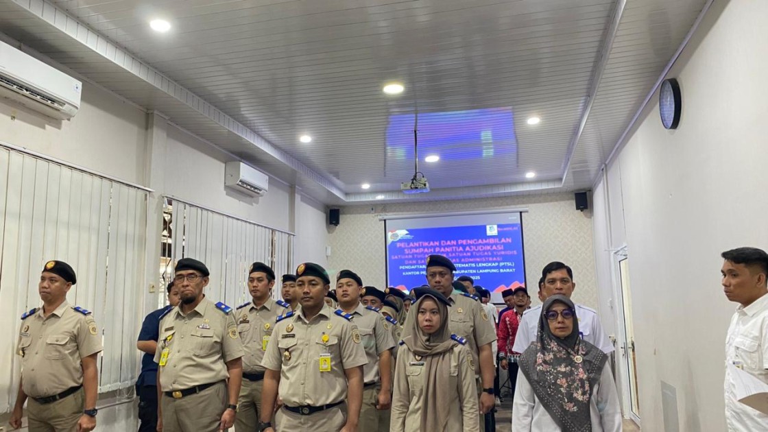 Lampung Barat, LambarXpose.com — Kantor Pertanahan Kabupaten Lampung Barat menggelar Pelantikan dan Pengambilan Sumpah Panitia Ajudikasi, Satuan Tugas Fisik, Satuan Tugas Yuridis, dan Satuan Tugas Administrasi dalam rangka pelaksanaan Program Pendaftaran Tanah Sistematis Lengkap (PTSL) Tahun Anggaran 2025. Rabu, 15 Oktober 2025.